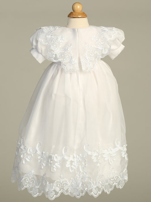 Embroidered Organza Baptismal Gown with Satin Trim - Lito 2210