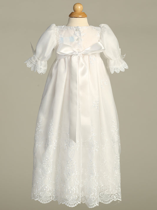 SaleAmber Embroidered Satin Ribbon Tulle Christening Gown