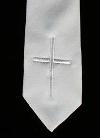 White Zipper Tie with Embroidered Cross - LT-EM3