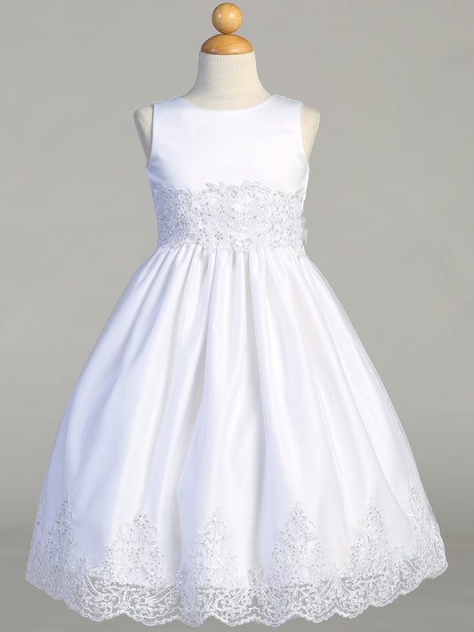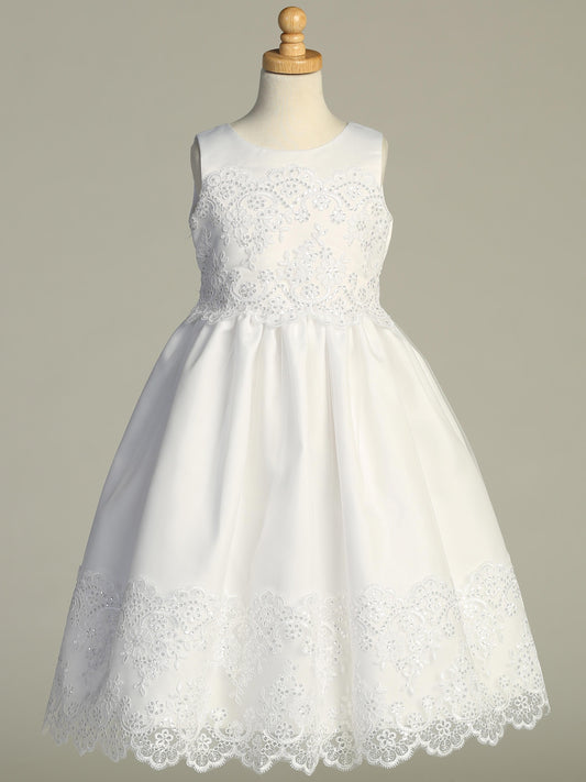 Satin First Communion Dress with Corded Embroidered Tulle and Sequins - SP210