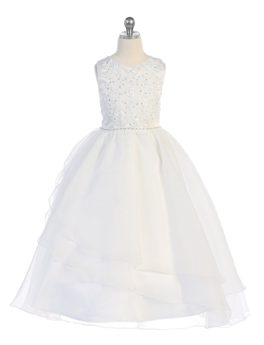 Beaded Embroidered Applique Communion Dress with Organza Skirt – SP604