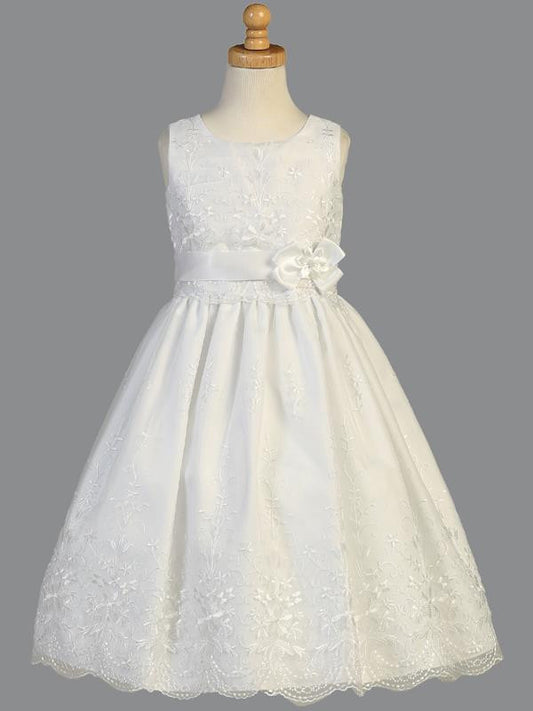 Embroidered Organza First Communion Dress with Ribbon - SP110