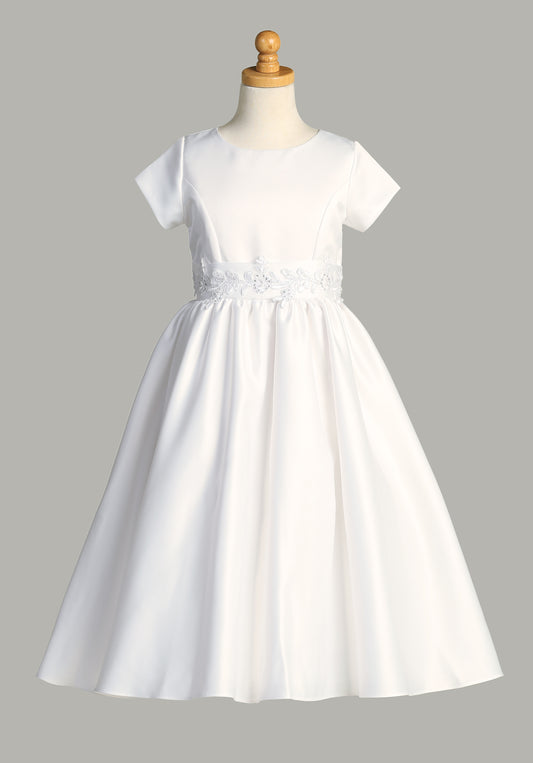 Satin First Communion Dress w/ Silver Corded Waist – SP185