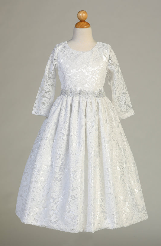 Corded Embroidered Tulle First Communion Dress with Sequins - SP209