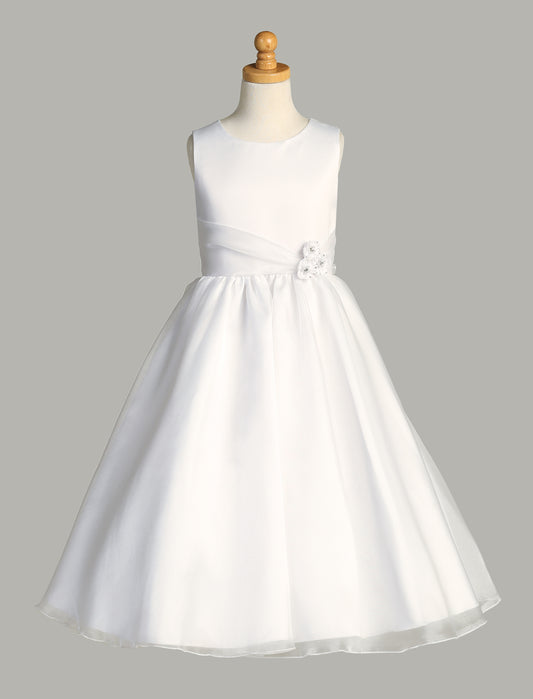 Satin First Communion Dress w/ Silver Corded Waist – SP185