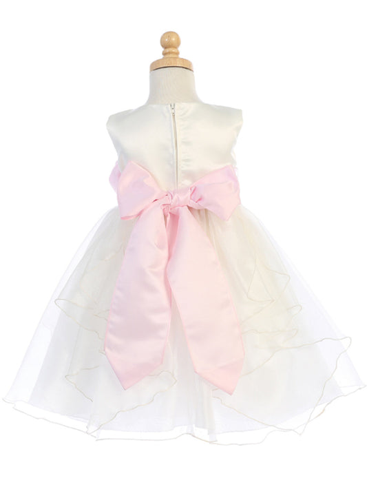 Ivory & Pink Satin Bodice Flower Girl Dress w/ Crystal Organza Skirt - BL244-IV-PNK