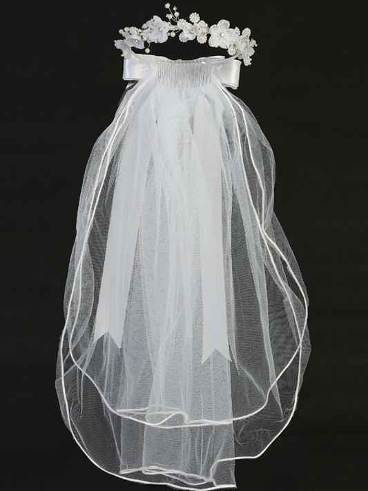 First Communion Double Layer Veil with 1/4 inch Satin Trim