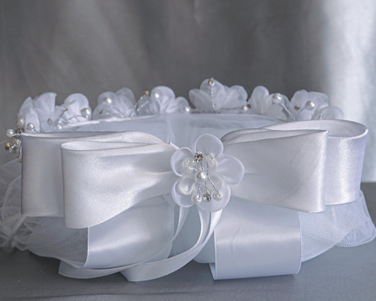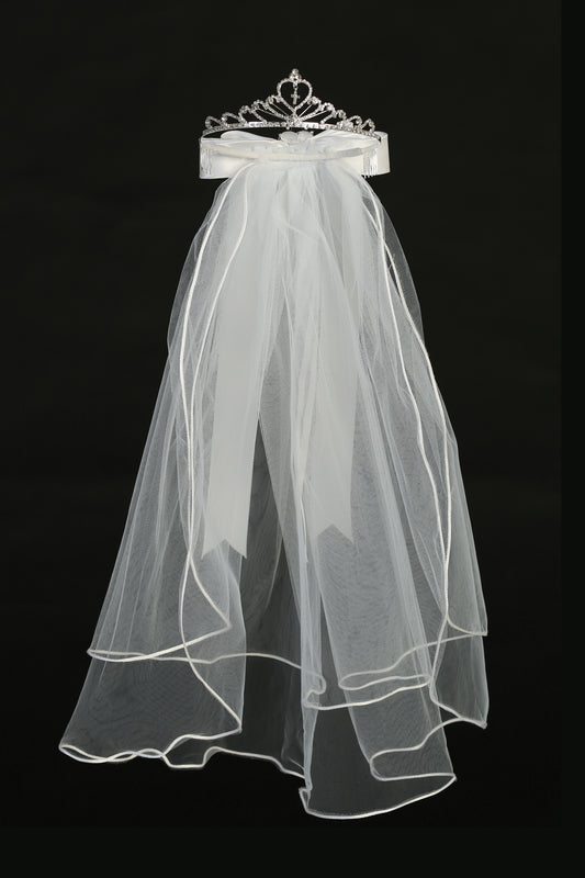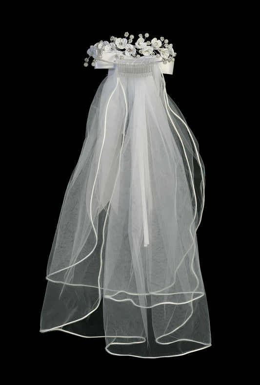 First Communion Veil with Crystal Flowers & Satin Bows T-426