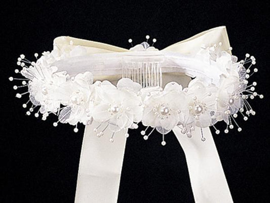 Flower & Pearl Headpiece with Bow - T-3
