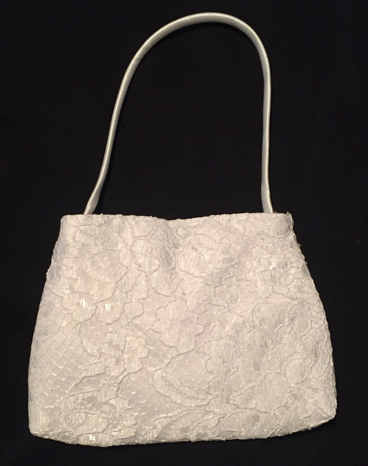 Girls White Lace Purse with Silver Flowers - LT-CP25
