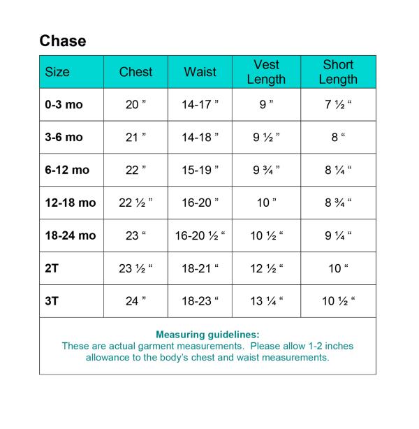 Available sizes: X-Small (0-3 Months), Small (3-6 Months), Medium (6-12 Months), Large (12-18 Months), X-Large (18 to 24 Months), 2 Toddler and 3Toddler.